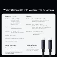 With a maximum output of 20V/5A, this cable can fully charge a 16-inch laptop in about 2 hours, a high-end smartphone in under an hour, and even power tablets or gaming consoles without slowing you down. The 480Mbps data transfer rate means you can move large files, photos, or videos in seconds. Plus, the integrated E-marker smart chip ensures safe and stable charging by regulating current and voltage.