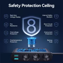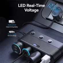 With an independent power switch for each cigarette lighter socket, you control which devices receive power, helping extend the charger’s lifespan and saving you from constant plugging and unplugging. The LED voltage display monitors your car battery’s health in real-time, alerting you if voltage drops below normal levels.