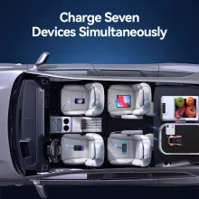 - Multi-device charging: Charge up to 7 devices simultaneously with 4 USB ports and 3 cigarette lighter sockets.