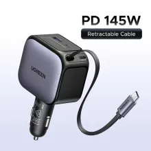 Stay charged wherever the road takes you with this high-speed 145W car charger, built for travelers, commuters, and tech lovers who need more power—fast. With three USB-C ports, one USB-A port, and a convenient retractable cable, this all-in-one charging solution ensures every device in your vehicle is ready for action—from your iPhone 15 Pro to your MacBook.