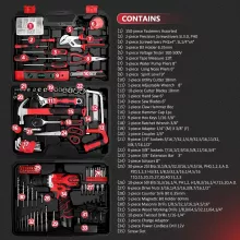 This tool kit is not just comprehensive—it’s thoughtfully built for efficiency, comfort, and durability. It includes a lightweight 12V cordless drill with a 3/8″ keyless chuck, two-speed control, and up to 1500 RPM for tackling everything from delicate screw work to tougher drilling jobs. Every tool is crafted from premium heat-treated chrome for long-lasting performance, with TPR comfort-grip handles to reduce fatigue during longer tasks. The sliding drawer in the toolbox offers extra storage space, so every screwdriver, wrench, or plier has its place.