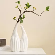 Crafted from high-quality ceramic, these vases are ideal for showcasing dried florals like pampas grass, eucalyptus, or simple greenery. The medium-sized forms (approximately 10–12 inches in height) make them perfect for tabletop arrangements, shelves, mantels, and console tables. With smooth finishes and organic curves, they complement both modern and Scandinavian-style interiors effortlessly.