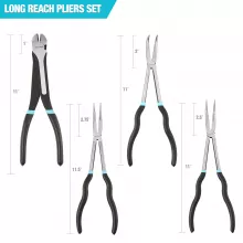 Each piece in this set is engineered for precision handling. With an impressive 11-inch length, they let you work deep into tight spots without compromising grip strength. The set includes straight pliers, 45° bent nose pliers, and 90° bent nose pliers, giving you the versatility to tackle a wide variety of tasks with ease. Whether you’re working on electrical projects, automotive repairs, or intricate hobby work, this set is built to perform.