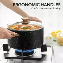 What sets this stock pot apart is the combination of stylish design and unbeatable functionality. The unique granite-inspired coating not only looks beautiful but also stands up to daily wear, while the ergonomic handle and glass lid add thoughtful touches to enhance your cooking experience.