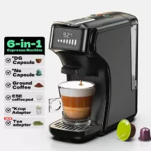 Enjoy barista-quality coffee drinks anytime with this versatile 6-in-1 capsule coffee machine. Designed to brew everything from rich espresso to creamy cappuccino, this machine works with popular capsule types like Nespresso and Dolce Gusto, plus ground coffee. Whether you want a hot or cold beverage, this compact coffee maker delivers fresh, flavorful cups every time. Perfect for mornings, afternoon breaks, or entertaining guests, it brings the café experience right to your kitchen counter.