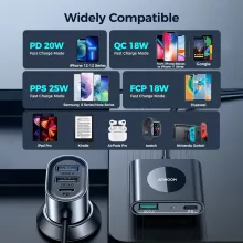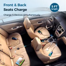 With a total output of 78W, this car charger ensures every device gets the power it needs. The PD ports are ideal for fast-charging newer devices, including USB-C phones, tablets, and even certain laptops, while the QC 3.0 ports deliver rapid charging for compatible devices. Charge up to 5 gadgets at once without sacrificing speed or efficiency.