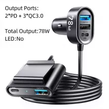 With a total output of 78W, this car charger ensures every device gets the power it needs. The PD ports are ideal for fast-charging newer devices, including USB-C phones, tablets, and even certain laptops, while the QC 3.0 ports deliver rapid charging for compatible devices. Charge up to 5 gadgets at once without sacrificing speed or efficiency.