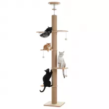 Transform your home into a feline paradise with the Adjustable Floor to Ceiling Cat Tree — a sleek, space-saving tower designed to keep indoor cats active, happy, and safe. Built from sturdy wood with natural sisal-wrapped posts, this modern cat tower offers endless opportunities for climbing, scratching, and lounging while blending effortlessly into your décor. Its adjustable height from 79″ to 103″ means it fits perfectly between your floor and ceiling without drilling, making it ideal for any room or apartment.