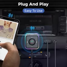 - Plug and Play Setup: Simply connect the adapter via the 3.5mm AUX port and power it through your car’s USB. It pairs instantly with your phone, and you can connect two devices at once for shared music and calls.