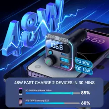 Transform your car into a high-tech entertainment hub with this Bluetooth 5.3 FM transmitter and car charger adapter. Designed to deliver powerful bass and Hi-Fi stereo sound, it brings your favorite music to life while you stay connected on the road. Whether you’re commuting, running errands, or going on a road trip, enjoy hands-free calling and seamless music streaming without distractions. Plus, the dual USB ports provide blazing fast 48W charging, so your devices stay powered up throughout the journey.