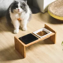 Made from durable, food-grade ceramic, each bowl holds up to 350ml (about 11.8 oz), ideal for small dogs and cats. The sturdy wooden stand keeps the bowls in place, reducing spills and messes on your floor. The double-bowl design allows you to serve both food and water at once, saving you time and space. Its smooth ceramic surface is easy to clean, ensuring a hygienic feeding area for your pet.