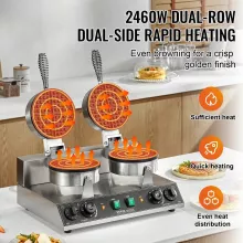 Bring the perfect balance of crispy and fluffy to your café, bakery, or food stall with this Commercial Dual-Head Waffle Maker. Crafted with a powerful 2460W heating system, this stainless steel waffle iron is designed for high-performance, offering a reliable solution for creating delicious Belgian waffles every time. Whether you’re serving customers at a bustling breakfast spot or preparing a special treat for a party, this versatile machine delivers mouthwatering results that will keep everyone coming back for more. With customizable temperature control and a sleek, professional design, this waffle maker is an essential tool for any food business.