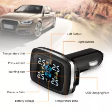 This compact device offers a clear digital display and an audible buzzer alarm that alerts you instantly when tire pressure or temperature goes beyond safe limits. It supports monitoring all four tires simultaneously, and you can easily switch the tire positions on the display to match your setup. With a built-in USB port, it also doubles as a convenient charger for your phone or other devices while you drive.