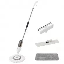 - 3-in-1 Functionality: Includes flat mop head for tight spaces, round mop for wet floor cleaning, and squeegee mop for glass and windows.