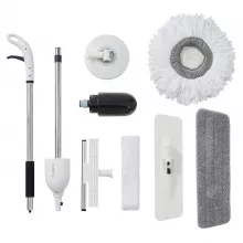 - 3-in-1 Functionality: Includes flat mop head for tight spaces, round mop for wet floor cleaning, and squeegee mop for glass and windows.