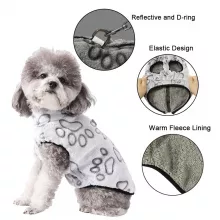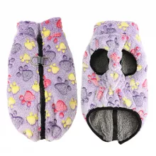 Crafted from high-quality polyester fleece, this jacket is soft, lightweight, and perfect for cold weather. It features an elastic chest girth for a comfortable fit and a practical D-ring on the back, so you can attach a leash without the need for a separate harness. The pullover design makes dressing your pet quick and easy, while the neat stitching ensures durability for daily use. Available in classic Gray, warm Coffee, and charming Purple, this jacket blends warmth with fashion effortlessly.