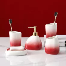 This isn’t your typical bathroom set. The gradient red glaze gives each piece a unique artistic feel — like a work of functional art. The handcrafted ceramic quality adds a sense of luxury and calm that plastic sets simply can’t match. Plus, the smooth surfaces and rounded edges make cleaning quick and easy, helping your space stay neat and fresh without the extra effort.