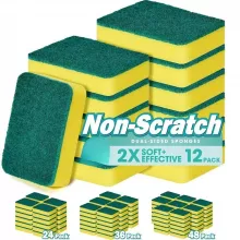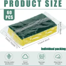 Crafted from eco-friendly materials and completely free of harsh chemicals, it’s safe for everyday use around your home. The sponge measures approximately 4 x 2.75 x 1.2 inches (10 x 7 x 3 cm), making it the perfect size to hold comfortably while reaching into corners and crevices. The bright yellow and green color combo keeps your kitchen looking fresh and clean.