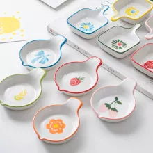 Japanese Small Plate Cartoon Pet Ceramic Plate Home Creative Mini Handle Cat Small Plate for Puppy Cat Dog Pet Supplies