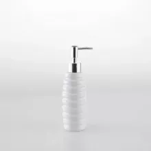 Crafted with high-quality ceramic, this dispenser features an irregular, modern silhouette that adds a sculptural touch to your bathroom countertop. The press-style pump makes it easy to use while ensuring precise dispensing every time. Sized just right, it holds enough liquid to last through dozens of uses without taking up too much space. At approximately 6 to 8 inches in height, it fits seamlessly into both compact powder rooms and spacious luxury bathrooms.