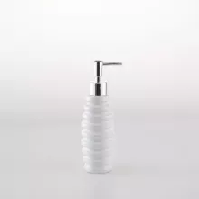 Crafted with high-quality ceramic, this dispenser features an irregular, modern silhouette that adds a sculptural touch to your bathroom countertop. The press-style pump makes it easy to use while ensuring precise dispensing every time. Sized just right, it holds enough liquid to last through dozens of uses without taking up too much space. At approximately 6 to 8 inches in height, it fits seamlessly into both compact powder rooms and spacious luxury bathrooms.