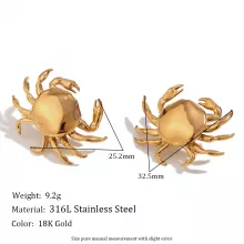 Ocean Crab Stud Earrings 18K Gold Plated Stainless Steel