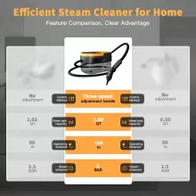 - 3-Level Adjustable Steam Control for precision cleaning on various surfaces
