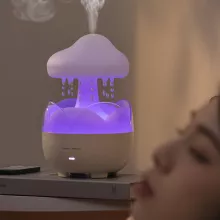Bring calm and comfort into your bedroom, office, or living area with this elegant Remote Control Air Humidifier and Aroma Diffuser. Featuring a unique cloud rain design, it gently releases a fine ultrasonic mist to keep your environment perfectly hydrated. The built-in 7-color LED night light creates a relaxing ambiance, ideal for winding down after a long day or focusing during study sessions. This device is more than just a humidifier — it’s a stylish addition to your home décor that promotes wellness and tranquility.