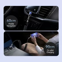 - Retractable Telescopic Design: Easily adjust cable length to eliminate clutter and reach passengers in the back seat.