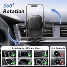 This phone holder is built for effortless use and maximum stability. With a smart one-button lock system, you can quickly secure your phone by pressing both sides simultaneously. Installation is a breeze—just clip it onto your car’s air vent and you’re ready to go. The holder offers 360-degree rotation, allowing you to adjust your phone to any angle you prefer, whether you want it in portrait or landscape mode. Thanks to its upgraded hook and strong load-bearing design, your phone stays stable even on bumpy roads.