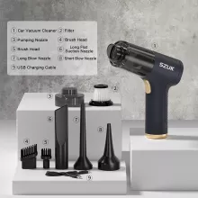 The included storage bag for the vacuum and its attachments is a game-changer. It's roomy enough to fit everything, offering a practical solution for storage and transportation. Gone are the days of dealing with scattered attachments or entwined cords – it allows for everything to be tidily kept in one spot. When it comes to its cleaning capabilities, this car vacuum is impressively potent. Despite its diminutive stature, it generates robust suction that makes light work of dirt, debris, and even the most tenacious pet hair lodged in my car's hard-to-reach spots. Witnessing its effectiveness in rendering my car's interior immaculate is truly astonishing. The assortment of accessories that come with this vacuum is noteworthy. Whether it's the specialized brush attachments or the slim nozzles, each accessory is designed with a specific cleaning task in mind, facilitating access to those challenging areas with ease. Additionally, the vacuum's compactness is another highlight. Its small footprint allows for easy stowage in the trunk or under a seat, occupying minimal space. This feature of portability means it's always within reach for quick clean-ups or routine upkeep. In summary, this car vacuum has left a lasting impression on me. Its combination of a compact design, robust suction, and comprehensive accessories collection renders it an essential tool for any vehicle owner who values cleanliness. This vacuum simplifies the task of keeping the interior of my car in pristine condition, and I wholeheartedly endorse it as a top-notch solution for effective and hassle-free car cleaning.