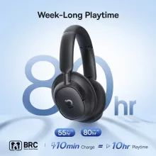 - Up to 80 Hours Battery Life: Go unplugged for days with up to 80 hours of playback (55 hours with ANC on).