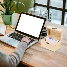 Enhance your organization and make note-taking effortless with this beautifully crafted wooden storage box. Experience the perfect balance of function and style while keeping your workspace clutter-free. Get yours now and enjoy quick, efficient access to all your important cards and notes every day.